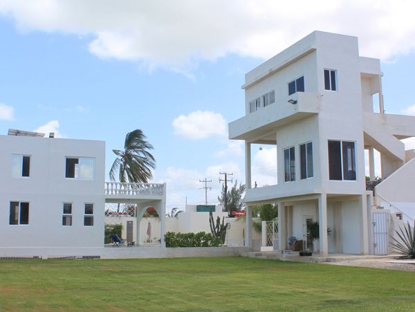 Private 3rd floor studio has ocean views, river views, 360-degree palm and village views. Rooftop directly above has one of the best views in Chelem!